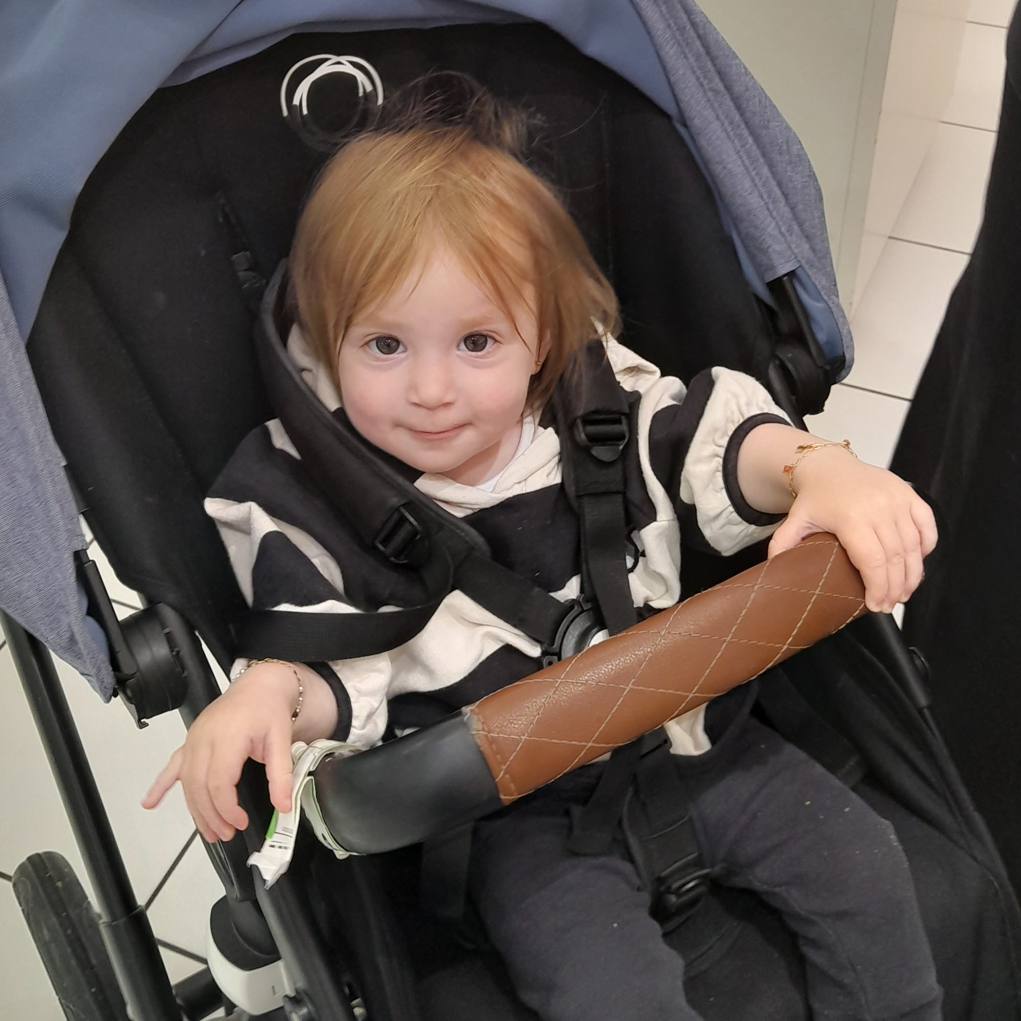 She had somehow fought her way out of the straps and was standing in her car seat, clinging to the back of the front seat, crying.